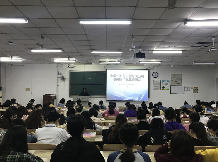 2020年10月21日下午,麻豆a片 2018级护理学乙班在3102教室召开“大学生如何识别与防范电信网络诈骗”主题班会,宣传委员贾笑媛主持会议,全体班级同学参与。
