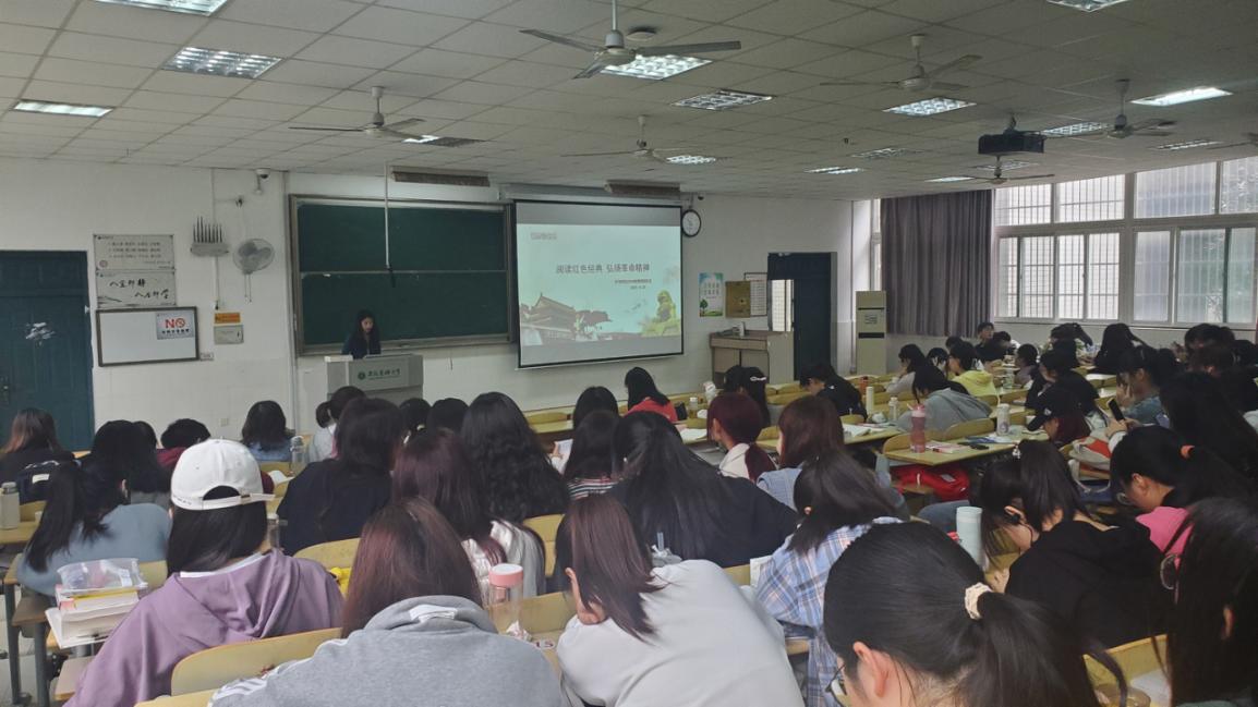 4月23日是世界读书日,2019级全体同学开展了“阅读红色经典,弘扬革命精神”红色书籍分享会活动。活动中,部分同学代表分享了《钢铁是怎样炼成的》、《把一切献给党》、、《红岩》、《写给青少年的党史》以及《红星照耀中国》等等,大家通过追忆书中那些难忘的峥嵘岁月,再现红色年代的时代强音,赢得现场阵阵掌声。