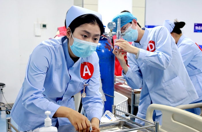 此次竞赛考核内容涵盖基础护理学、内科护理学、外科护理学、妇产科护理学、儿科护理学、急危重症护理学等相关内容,全面考察选手的临床思维、专业水平、人文素养和创新精神,来自7家医院的10支参赛队伍共40名选手参赛。竞赛分为初赛和决赛两个部分,初赛为“多站式”比赛,共设5个站点,每个站点内选手根据要求进行技能操作和理论答题;决赛为“单站式”比赛,考核团队的技能操作和综合素质,初赛胜出的4支队伍参加决赛。