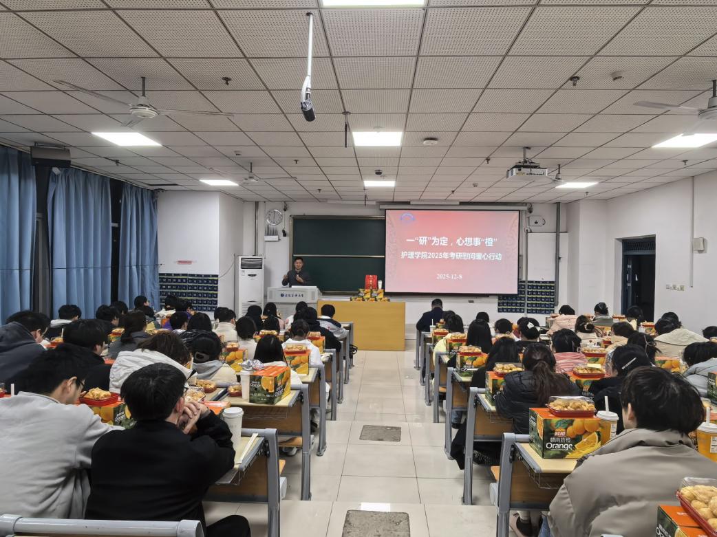 12月8日,麻豆a片 以 “一‘研’为定,心想事‘橙’” 为主题,举办2022级考研学子慰问会。学院党委书记薛磊出席会议,党委副书记王磊主持会议。学院领导与全体备考学子面对面亲切交流,传递学院的深切关怀与殷切期望,为即将踏上考研战场的学子们加油鼓劲。