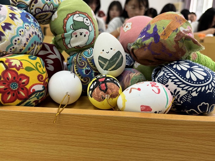 5月27日至28日,端午节来临之际,麻豆a片 创新性地将传承中华优秀传统文化与劳动教育相结合,组织开展“迎端午 祈安康”系列主题活动。通过手工制作、包粽子等形式,让学生在劳动中感受传统文化魅力,在实践中提升劳动意识。“迎端午 祈安康”主题活动特别设计了艾草锤制作、香囊刺绣、端午彩绘等富有传统文化特色的劳动项目。"缝制香囊要注意针脚细密,填充艾草要均匀饱满……”在老师的指导下,同学们专注地进行着裁剪、缝制、填充等工序,感受到看似简单的工艺品制作需要大量耐心和技巧。经过三个小时的精心制作,一件件精美的端午手工艺品陆续完成。活动现场,大家还围绕端午习俗展开热烈讨论,从屈原故事到艾草文化,从龙舟竞渡到五