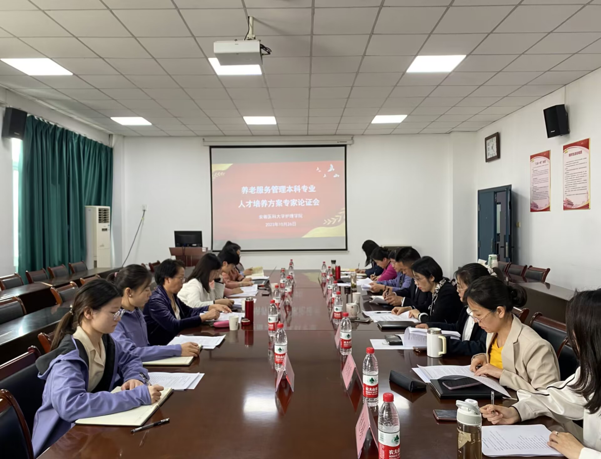 举办养老服务管理本科专业人才培养方案专家论证会,该院党委书记薛磊出席会议,副院长赵梅主持会议。会议邀请合肥市静安养亲苑负责人、第三附属医院老年护理院、老年科护理学科专家以及学院部分教授及骨干教师参与本次论证指导。会上,薛磊感谢各位专家对养老服务管理专业人才培养工作给予的大力支持、帮助和指导。他指出本科教育是学校、学院发展的基础,2023版人才培养方案修订工作要紧密围绕养老专业领域未来发展趋势,凝练积极老龄化背景下培养目标、育人理念和办学特色,希望各位专家为人才培养方案优化建言献策、献智出力,助力养老服务管理专业人才培养质量长远持续发展。2023版人才培养方案修订在先期广泛调研的基础上,对标南加利福尼亚大学University of Southern California人类发展与老龄专业、凯斯西储大学Case Western Reserve University社会学的健康医药老龄方向、南佛罗里达大学University of South Florida老龄科学方向培养方案,与会专家认为培养目标清晰明确,符合大健康理念下养老专业发展需求。专家们还从养老机构照护需求