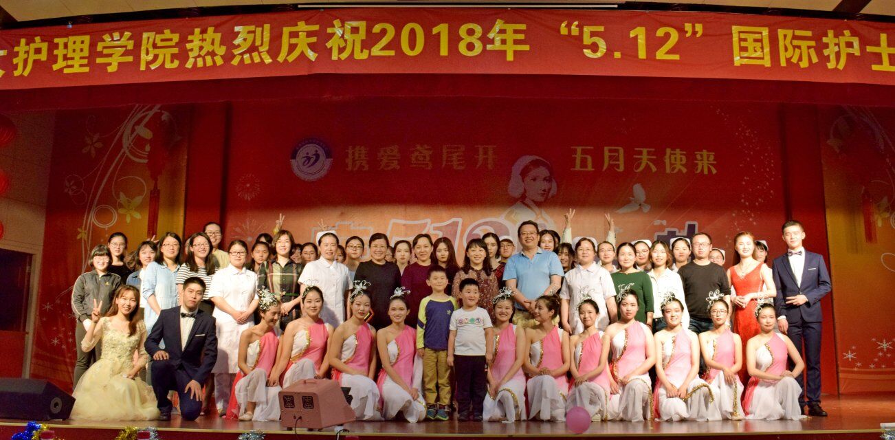 在南校区多功能厅举办了以“携爱鸢尾开,五月天使来”为主题的护士节晚会暨表彰大会。晚会首先进行了庄严而神圣的“授帽暨宣誓仪式”。接着,对过去一年获得全国护理临床技能大赛一等奖、安徽省“互联网+”大学生创新创业大赛银奖、“全国活力团支部”、本科生发表科研论文、校“十佳本科大学生”等六十余位优秀同学进行了表彰,希望全体同学学习获奖同学的科研创新精神,继续前进,再创佳绩。同时,进行了“星翼筑梦”志愿服务队的接棒仪式,号召全体同学传承志愿服务精神。此次晚会对护士节前夕拾金不昧的张琦同学进行了特别表彰,向她颁发了校团委授予的“校优秀共青团员”荣誉证书,失主亲自到晚会现场为张琦同学送来锦旗,学院也向全院师生发起了向张琦同学学习的倡议书。整场晚会精彩不断,高潮迭起。古筝合奏《青花瓷》及优美的配舞给人带来一场视听盛宴,美声合唱《九儿》、小品《在路上》及舞蹈《映水芙蓉耀中华》更是将晚会推向了高潮,改编的歌