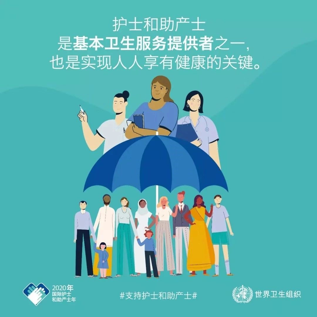 世界卫生大会将2020年定为国际护士和助产士年,彰显世界各地护士和助产士在提供卫生保健方面发挥的重要作用,并呼吁加强护理和助产人员队伍。助产士在保护妇女儿童健康方面发挥着至关重要的作用。高质量的助产服务能够使孕产妇和新生儿的死亡率下降80%,使早产率下降24%。