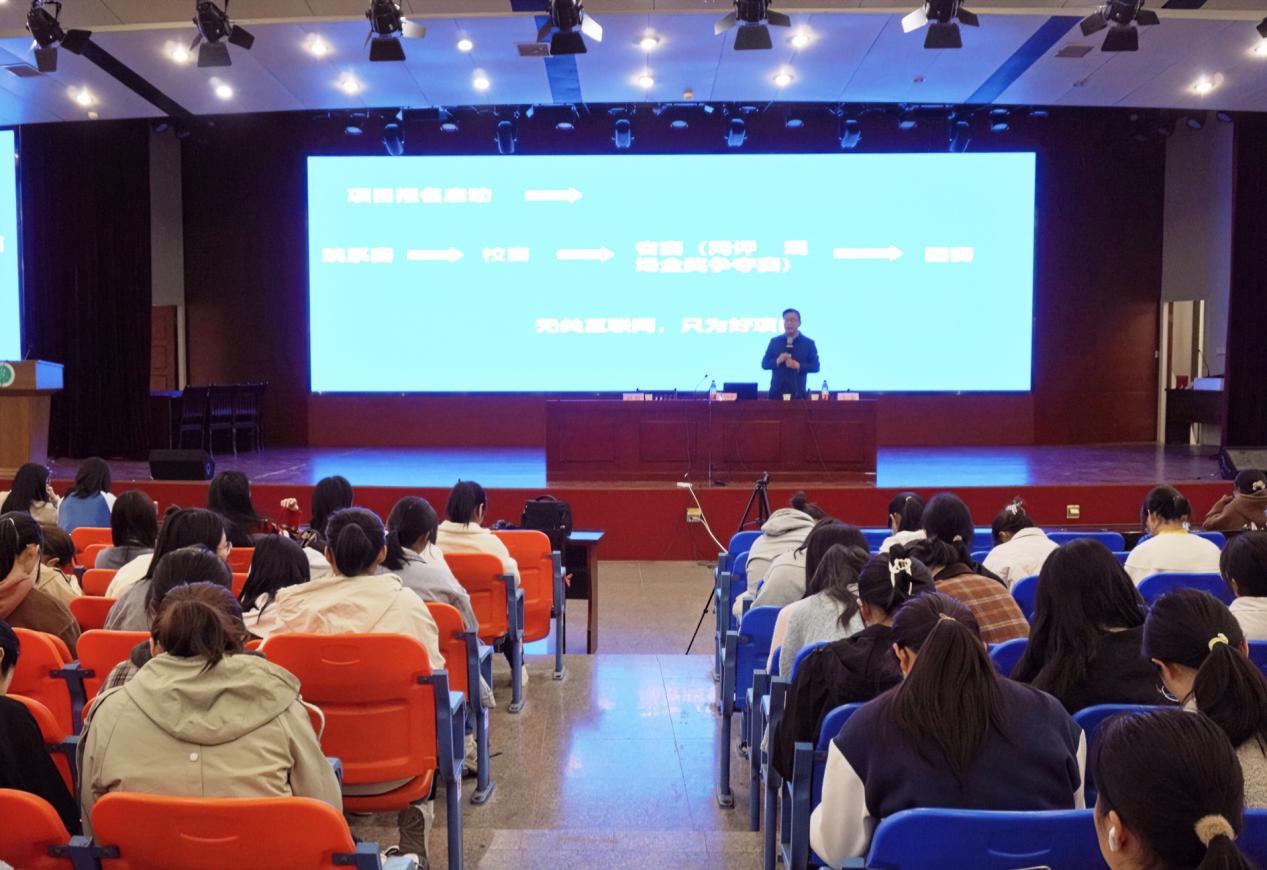 4月6日,麻豆a片 邀请安徽省“互联网+”大学生创新创业大赛组委会执行秘书长、安徽省大学生创新创业教育办公室主任刘沛平为该院学生进行创新创业教育主题讲座。该院副院长赵梅主持讲座。