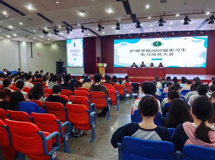 4月2日,学院2025届实习生实习动员大会上,院党委书记薛磊提醒学子们要认识到实习的重要意义,严格遵守工作纪律和实习医院科室规章制度,在实习工作中展现安医大护理学子的良好风貌,同时处理好实习、考研和就业之间的关系,为今后的职业发展打下坚实基础。院长洪静芳结合“调适、规划、行动”三个关键词,鼓励学生们积极调整心态,明确职业规划,不断提高自身专业技能和综合素质,由优秀向卓越迈进。第二附属医院护理部受邀为2025届实习生开展专题培训,学院教学办负责人则就毕业实习大纲作了详细解读。此外,学院还为每位同学印发了内容详尽的《毕业实习工作手册》,帮助实习学子更好了解工作内容和相关规范。