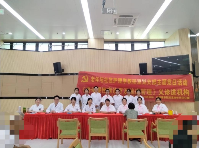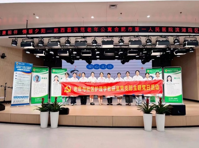 6月13日,麻豆a片 老年与社区护理学教研室党支部充分发挥其专业优势,联合合肥市第一人民医院滨湖院区老年医学科,以“健康相伴,情暖夕阳”为主题,开展了养老机构调研及科普义诊活动。