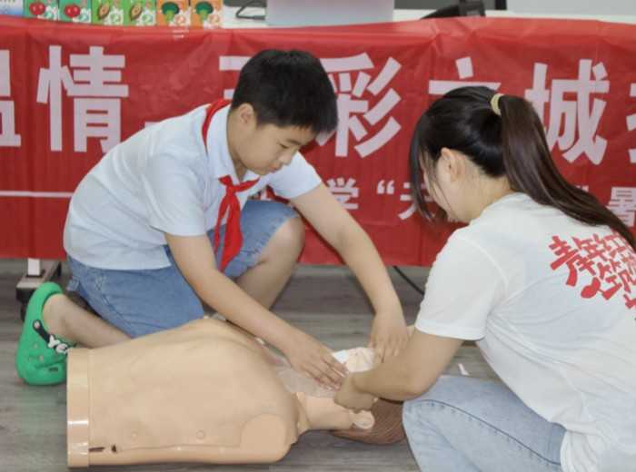 课堂上,实践团通过真实案例展示、小组讨论、课堂互动等形式,向甘棠镇小学的孩子们讲解了青春期的生理变化与自我呵护知识,并针对孩子们的问题给予详细解答,帮助他们正确掌握青春期生理卫生知识和预防性侵害知识,科学认识青春期自我护理的重要意义。为了提升当地青少年儿童的急救意识和急救技能,实践团还发挥医学生的专业优势,为孩子们科普了心肺复苏和海姆利克急救法,并将理论知识与现场实操相结合进行急救示范,带领孩子们亲自体验急救操作。