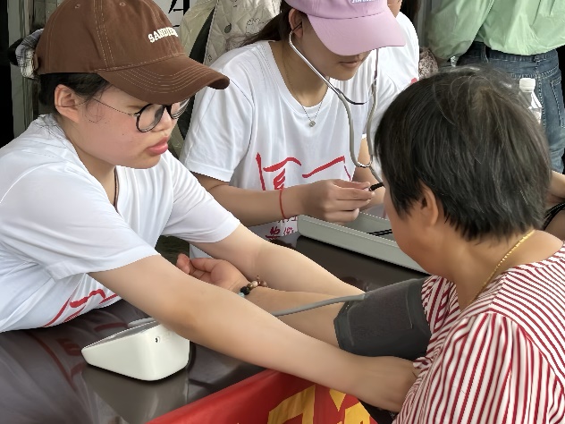 在指导老师的带领与帮助下,实践团在万山卫生院开展了测血糖、测血压、传知识、做调查等多元化健康服务送温暖活动。在公益活动中,志愿者们初步掌握了万山镇居⺠的基本健康情况。这不仅提升了他们自身的专业技能,同时也践行了服务基层、奉献社会的理想信念。