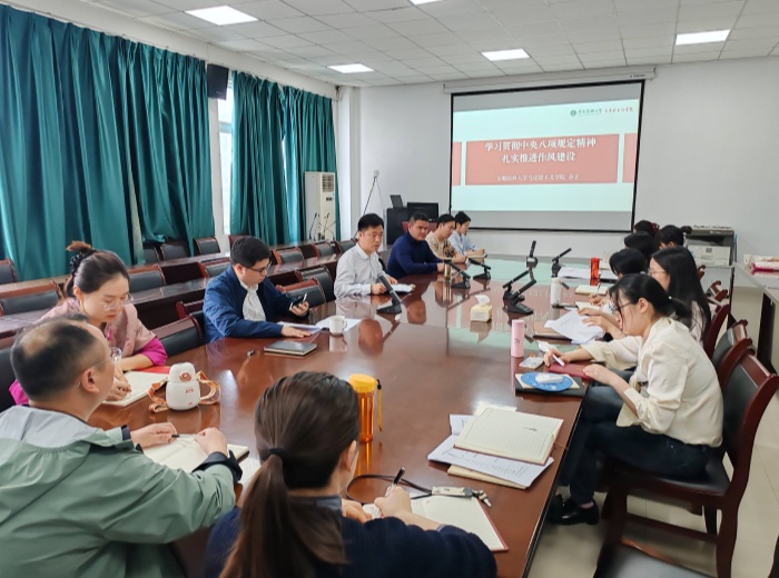 4月16日至17日,麻豆a片 召开深入贯彻中央八项规定精神学习教育读书班暨党委理论学习中心组学习会,全面落实中央、上级党委关于开展深入贯彻中央八项规定精神学习教育相关要求,示范带动学院学习教育走深走实。院党委书记薛磊主持会议并讲话,院领导班子成员参加读书班。