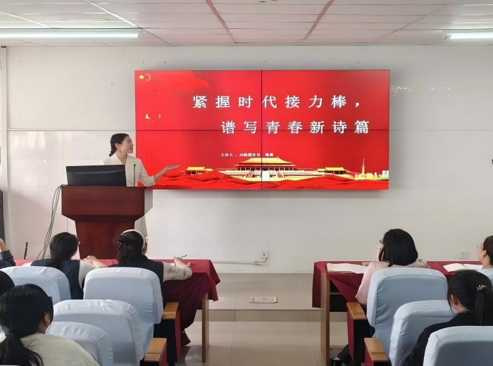2024级研究生赵云凤以《以青春之名,赴时代之约》为题,从青春铸魂、使命生光、青年作答三方面探寻当代青年价值坐标,激励青年以实现中华民族伟大复兴为己任,用微小努力拼出时代答卷;2023级护理学王依晨以《六尺巷精神:从邻里谦让到全球文明互鉴的青年担当》为题,从安徽桐城“让他三尺又何妨”的历史典故切入,阐释中华优秀传统文化中“谦和礼让”的智慧如何在当代焕发新机;2024级养老服务管理学王洪丽以《以青春之名,护银龄安康》为题,立足自身专业,呼吁学子们打破传统养老观念,通过志愿服务、科研创新等方式,为养老事业注入更多青春活力。
