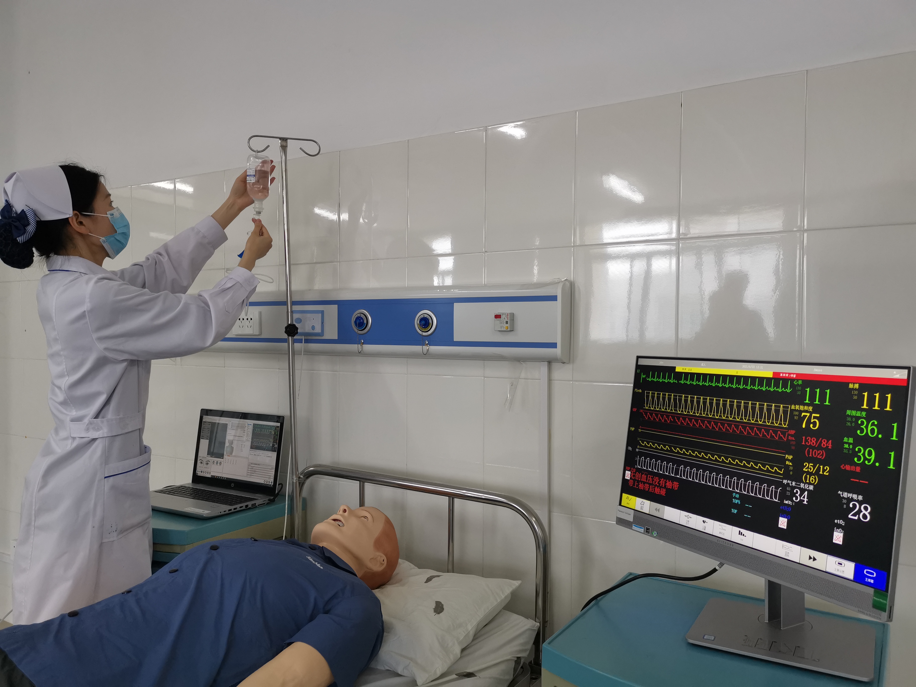 我院拥有SimMan模拟教学实验室共4间,实验室配备了先进的智能综合模型人(SimMan ALS、SimMan Essential、SimMan 3G Plus)共计4部,主要承担《护理综合实训》《内科护理学》《外科护理学》等课程的实践教学任务。教师通过电脑软件编辑模拟临床病例,设置各项生理指标的复杂变化,与实验室内配备的除颤仪、抢救车、移动吊塔等先进的仪器设备配合使用,模拟临床真实场景,为护生提供高仿真、安全、可反复试错的练习环境,从而缩小其在课堂理论与临床实践之间的差距。SimMan模拟教学可训练护生的临床思维能力、人文关怀能力、沟通能力和团队协作能力。实验室年均承担教学工作量约600学时。